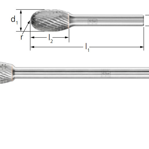 樹形毛刺,半徑端部符合DIN 8032,切割符合DIN 80003。
