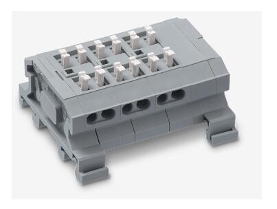 無螺絲接線端子, 用于繼電器, 1 極, 4 孔, 交叉, 分支, 絞合, 單線, 尼龍, DIN導軌安裝, UL CSA TUV 94V-0