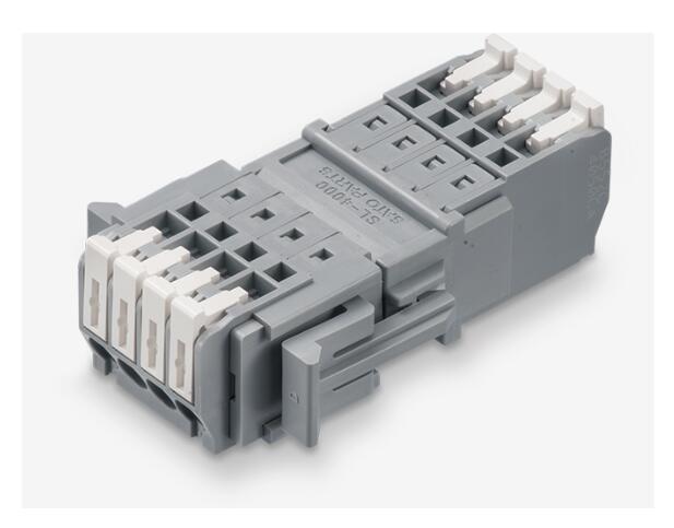 無(wú)螺絲接線端子, 1 芯 4 孔, 交叉, 分支, 按鈕止動(dòng)器, 絞合線, 單線, 尼龍 94V-0