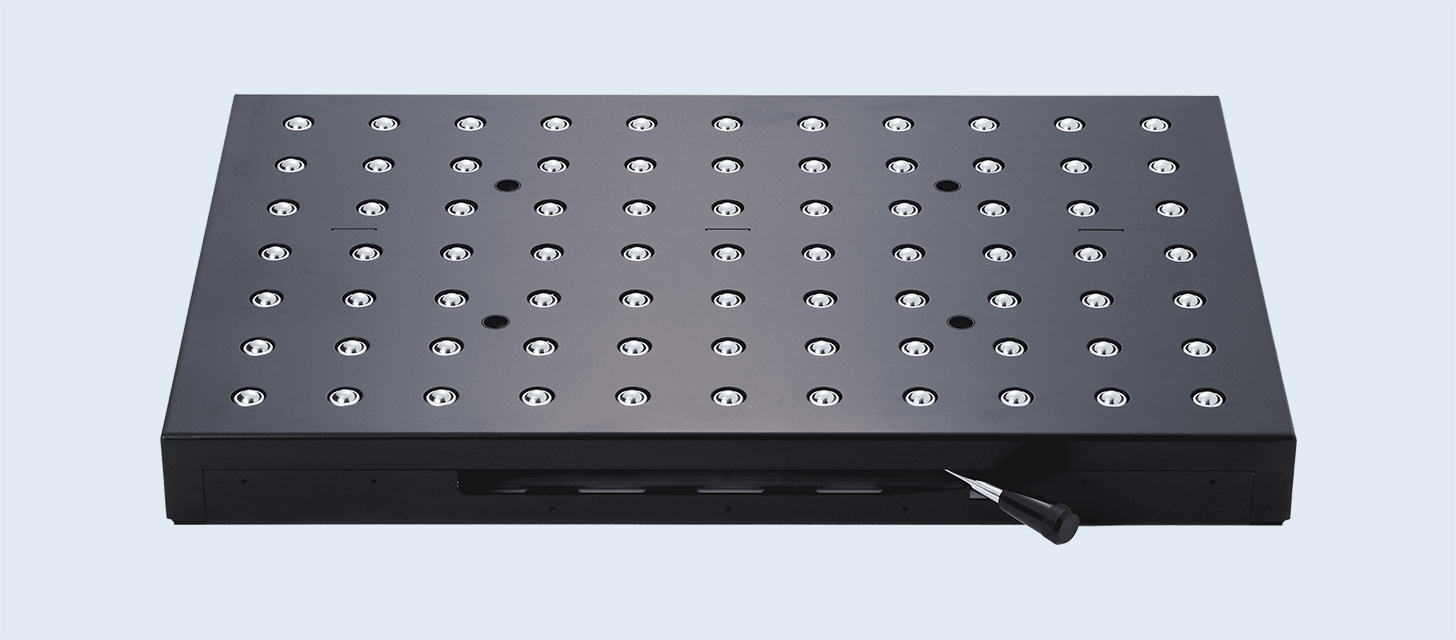 設置時,通過對設備臺面進行方槽加工,就可進行夾具、模具、工件的輸送和定位。